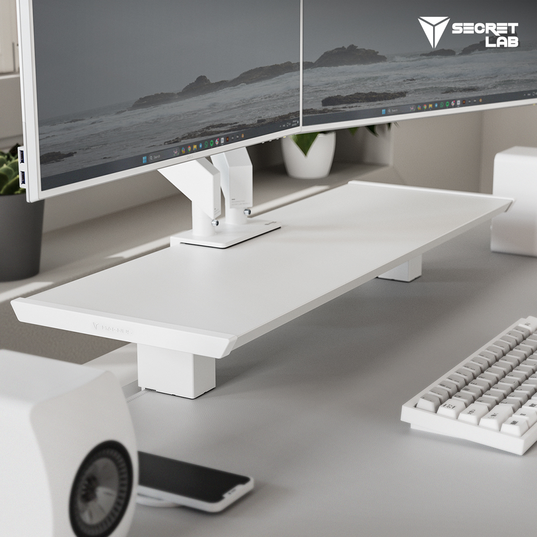 Add extra shelf space to your MAGNUS Pro with a matching Pure White desk riser. It fits securely into the cable tray opening, while retaining full functionality and access to the rear hinged cover and cable tray. Slot your keyboard beneath it when you’re done for the day for an even cleaner look.